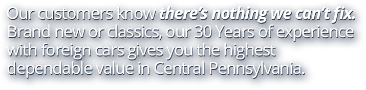 Foster's Automotive provides comprehensive expert repair and maintenance service for most foreign brands such as Volkswagen, BMW, Audi, Porsche, Mercedes-Benz, Volvo, Saab, Jaguar, Peugeot, Lexus, Toyota, Nissan, Honda and VW included, as well as most domestic brands, classics and high-performance vehicles near you in Mechanicsburg, PA.